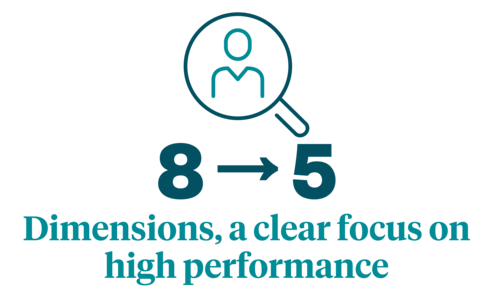 The process began with three design workshops with the CHRO and HR managers, in which strategically relevant dimensions for high performance were identified. An agile, iterative methodology was used in and around the workshops, including semantic analyses and AI-supported word field evaluations. This was supplemented by the early trialling of a radically simplified model with the CEO. This was followed by interviews with eight key stakeholders, such as the CEO, division presidents and operational managers from non-European regions. Finally, the model was finalised in a few quick feedback rounds.