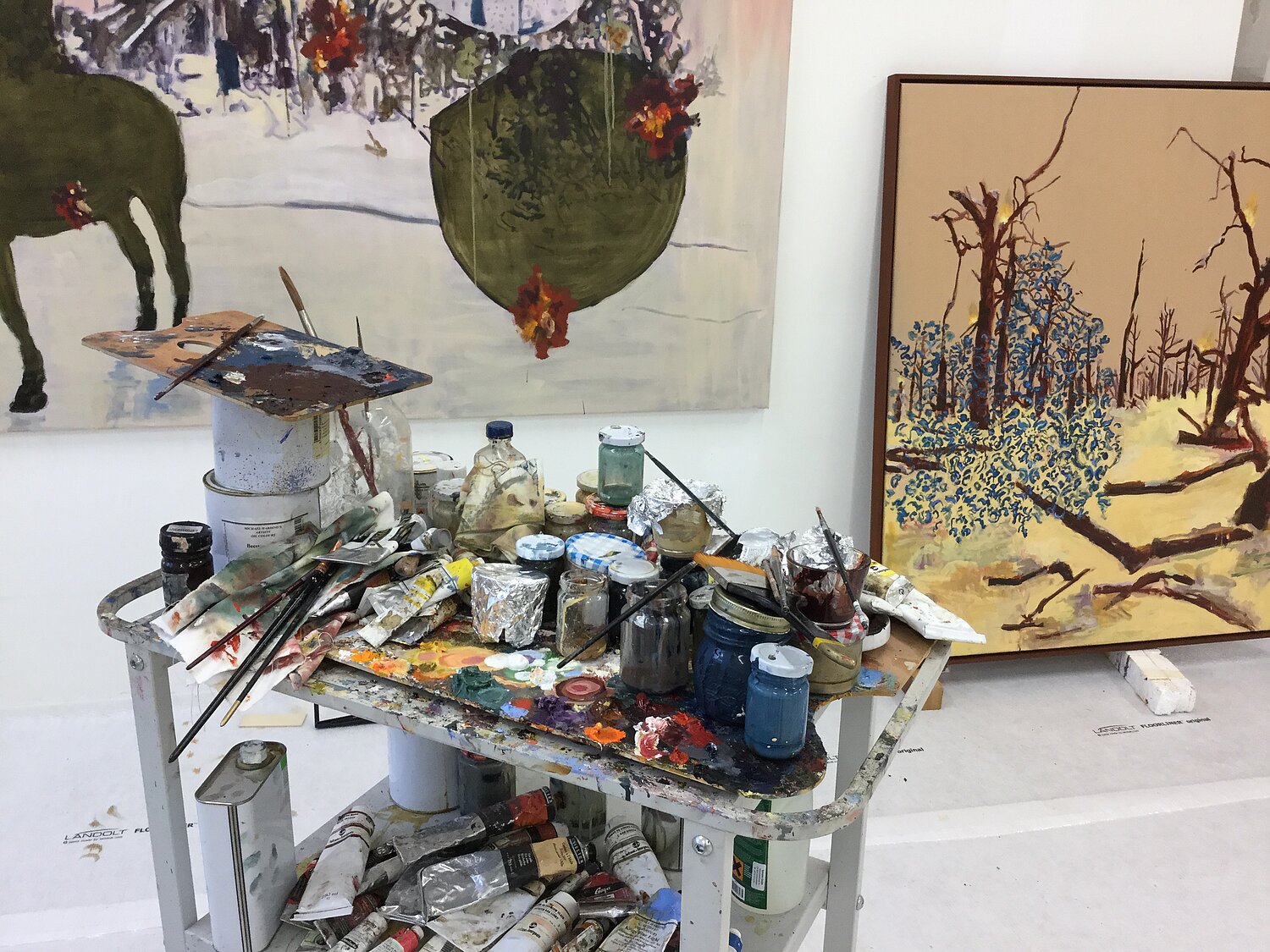 UW: Dialektik ist ein zentraler Bestandteil meiner Arbeit und auch dieser Ausstellung. Die Farben sind oft gedämpft und „gebrochen“, was eine gewisse Spannung erzeugt. Ich möchte, dass die Malerei sowohl den Verstand als auch die Emotionen anspricht, weil sich beide Seiten gegenseitig bedingen.