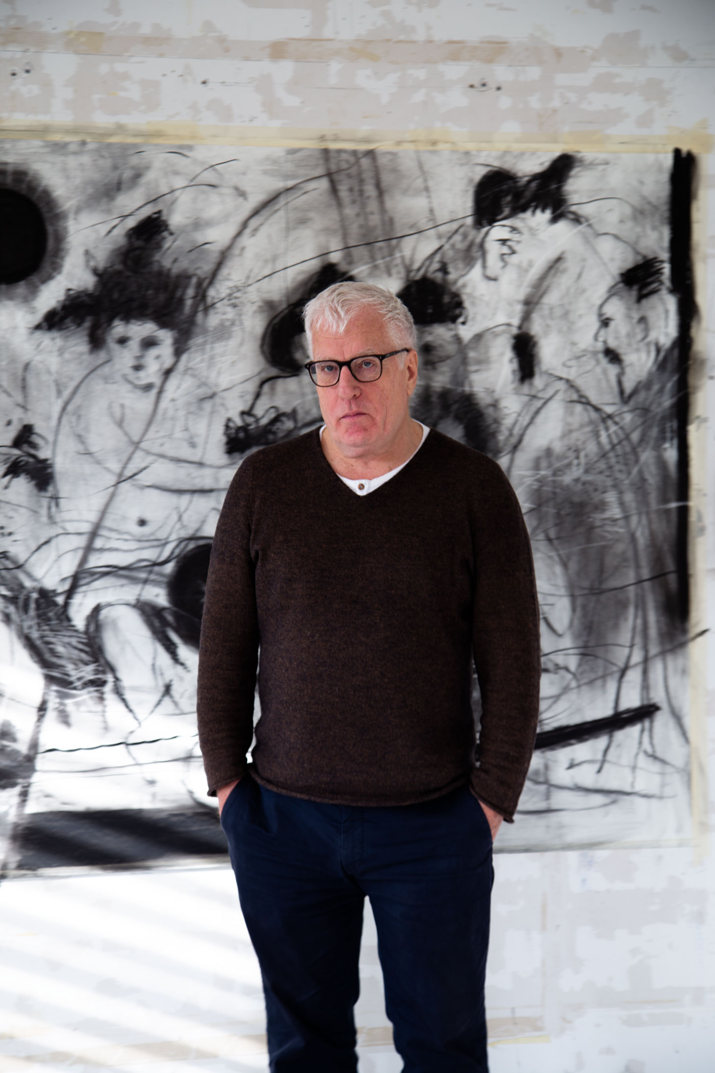 Ab 1989, als ich mit einem Stipendium nach London kam, ging ich dann neue künstlerische Wege. Dort lernte ich Künstler wie David Hockney und Francis Bacon kennen, anhand deren Werke ich verstand, dass man auch in der Figuration eine gewisse Aktualität ausdrücken kann. Daher bezeichne ich eigentlich alles, was vor 1989 entstand, als mein Frühwerk. Die Werke nach 1989 wurden zunehmend figürlicher und beschäftigten sich in einer Mischung aus Provokation und ersten Gehversuchen in der Gegenständlichkeit mit Themen wie Kriegsschiffen und Ruinen. Meine Ausstellung in der Kunsthalle Bern 1991 war dann damit für mich der Startpunkt hinein in eine breitere Öffentlichkeit. Zugleich gab es spannende Parallelen mit gleichaltrigen Künstlern wie etwa Luc Tuymans, die sich mit derselben Fragestellung beschäftigten: Was kann Malerei heute noch leisten?